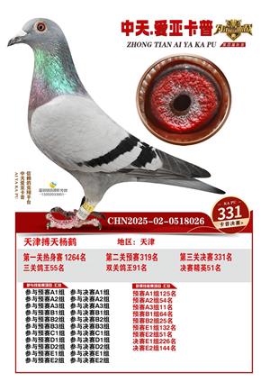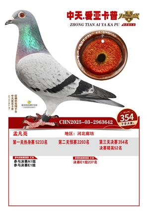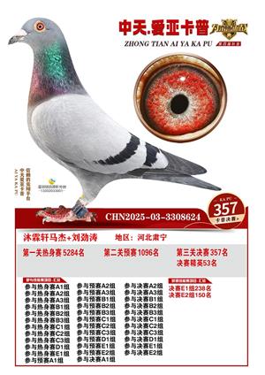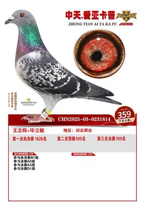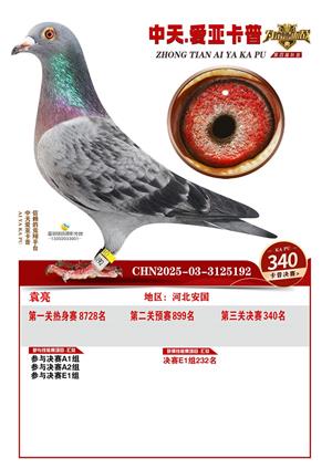 河北中天爱亚卡普公棚2025年决赛获奖鸽照片