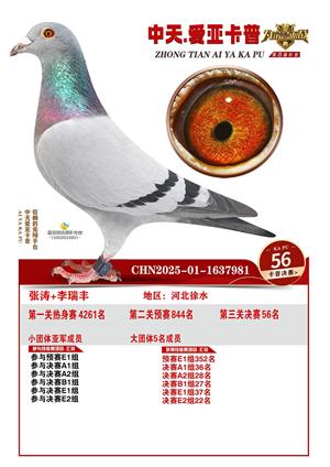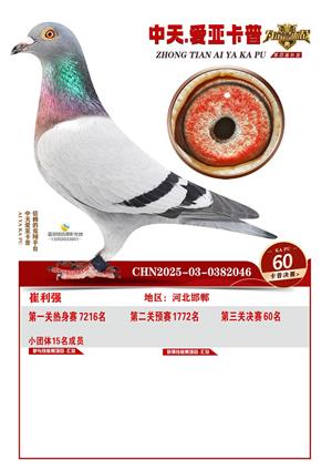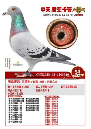 河北中天爱亚卡普公棚2025年决赛获奖鸽照片