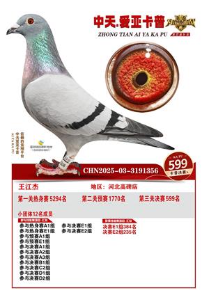 河北中天爱亚卡普公棚2025年决赛获奖鸽照片