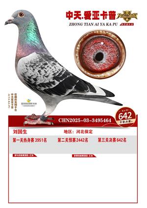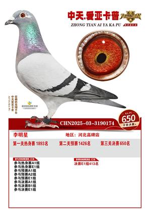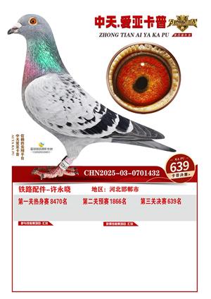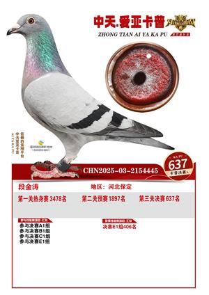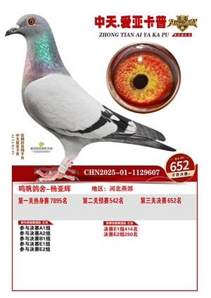 河北中天爱亚卡普公棚2025年决赛获奖鸽照片