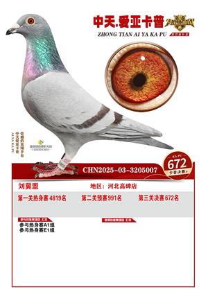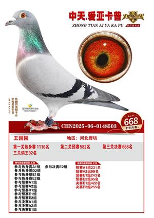 河北中天爱亚卡普公棚2025年决赛获奖鸽照片
