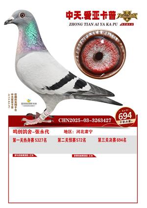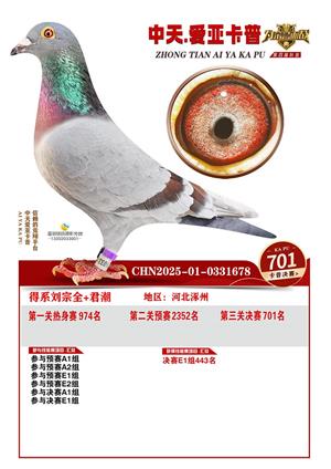 河北中天爱亚卡普公棚2025年决赛获奖鸽照片