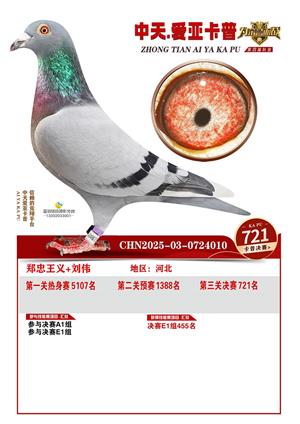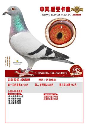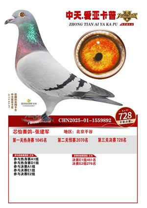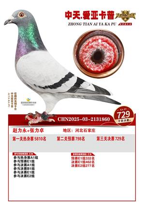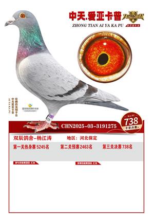 河北中天爱亚卡普公棚2025年决赛获奖鸽照片
