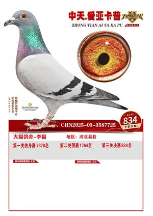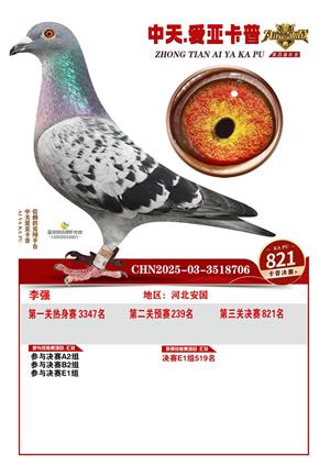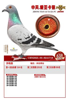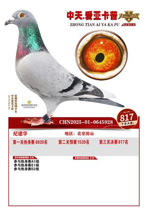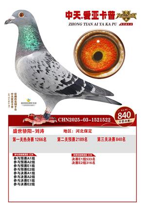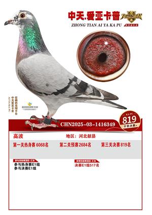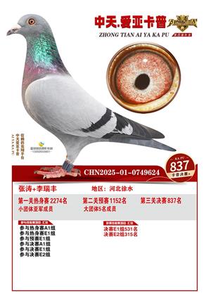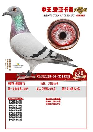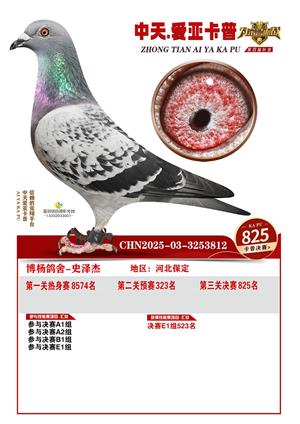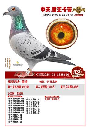 河北中天爱亚卡普公棚2025年决赛获奖鸽照片