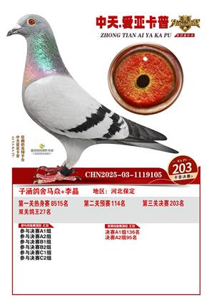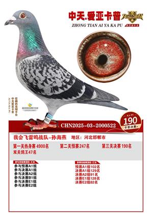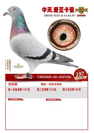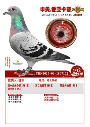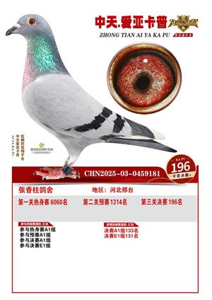 河北中天爱亚卡普公棚2025年决赛获奖鸽照片