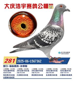 大庆浩宇公棚25年获奖拍卖鸽前700名照片