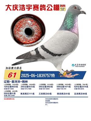 大庆浩宇公棚加站赛获奖鸽照片欣赏