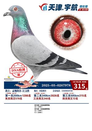 天津宇航晚秋棚2025年决赛获奖鸽照片