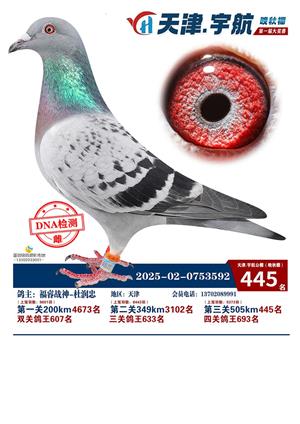 天津宇航晚秋棚2025年决赛获奖鸽照片