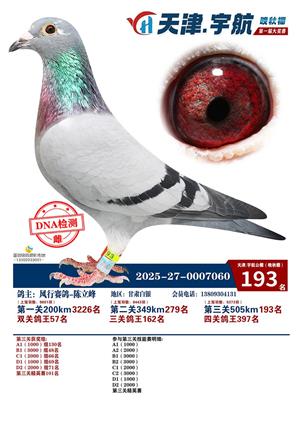 天津宇航晚秋棚2025年决赛获奖鸽照片