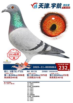 天津宇航晚秋棚2025年决赛获奖鸽照片