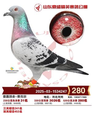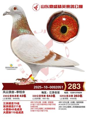山东鼎盛精英赛鸽公棚2025年决赛获奖鸽照片赏析