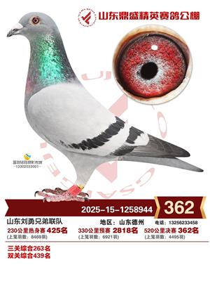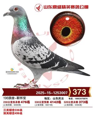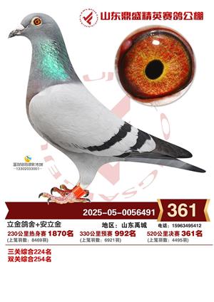 山东鼎盛精英赛鸽公棚2025年决赛获奖鸽照片赏析