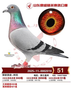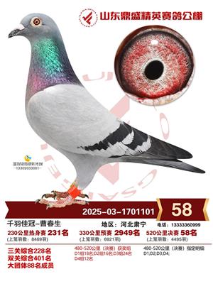 山东鼎盛精英赛鸽公棚2025年获奖鸽照片赏析