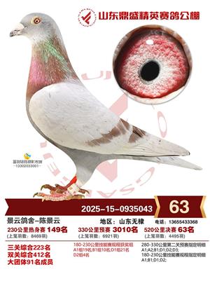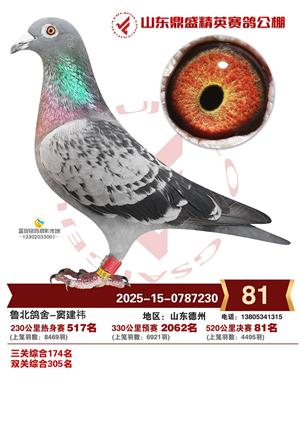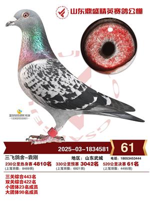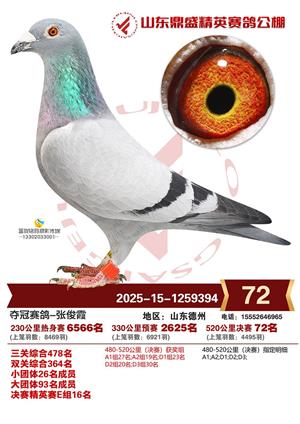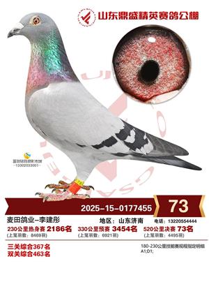 山东鼎盛精英赛鸽公棚2025年获奖鸽照片赏析