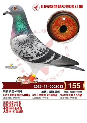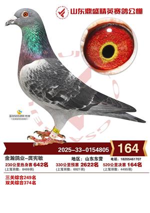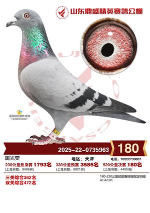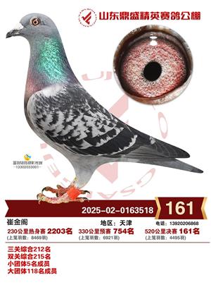 山东鼎盛精英赛鸽公棚2025年获奖鸽照片赏析