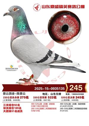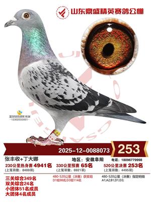 山东鼎盛精英赛鸽公棚2025年获奖鸽照片赏析