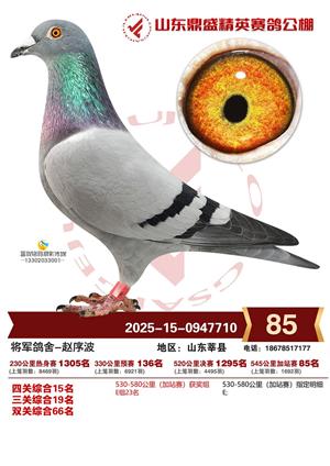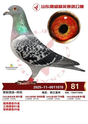 山东鼎盛精英赛鸽公棚2025年加站赛获奖鸽照片赏析