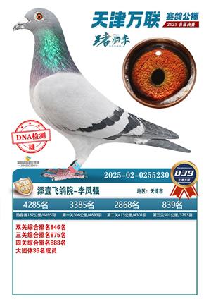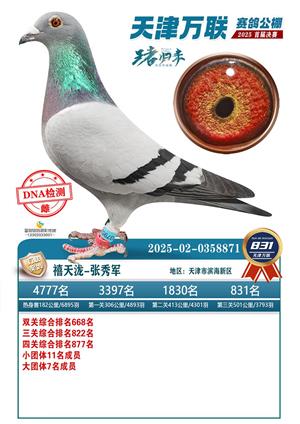 天津万联赛鸽公棚决赛获奖鸽照片