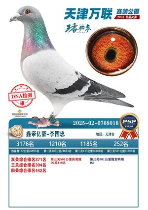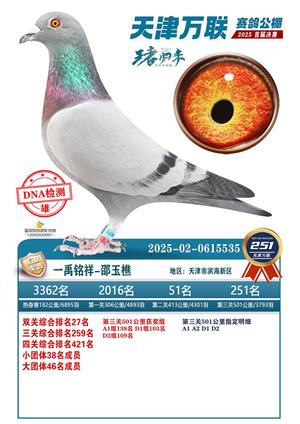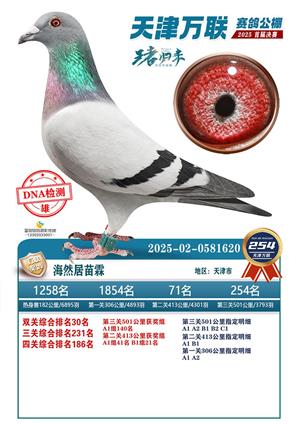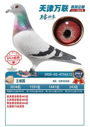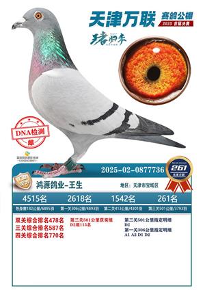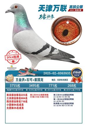 天津万联赛鸽公棚决赛获奖鸽照片