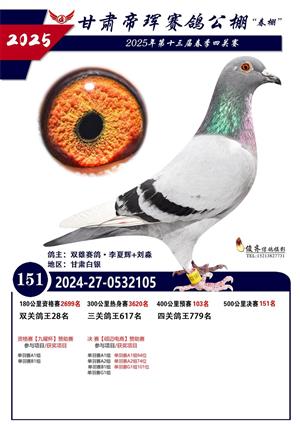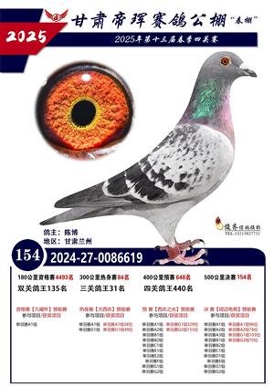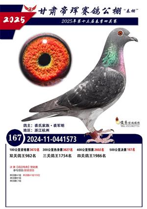 甘肃帝珲(春):2025年春季四关赛决赛获奖鸽照片