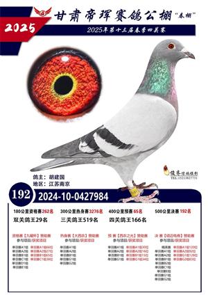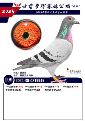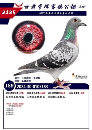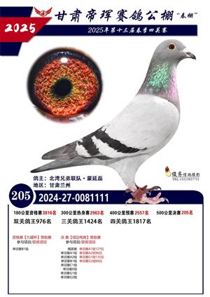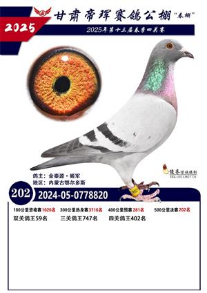 甘肃帝珲(春):2025年春季四关赛决赛获奖鸽照片