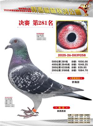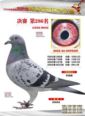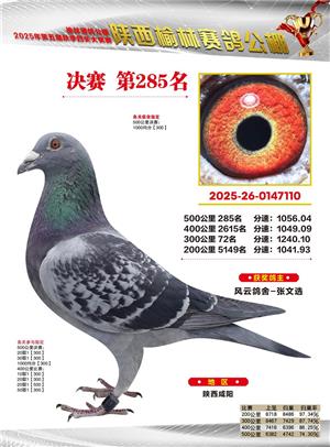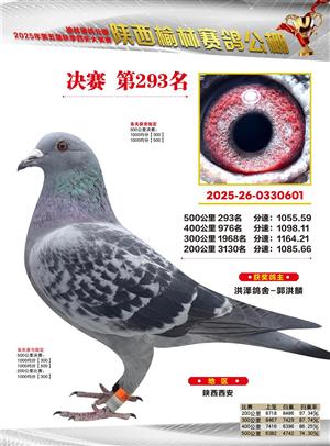 陕西榆林赛鸽公棚2025年决赛获奖鸽欣赏(1-600名)