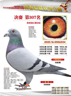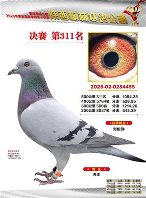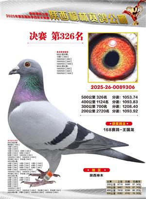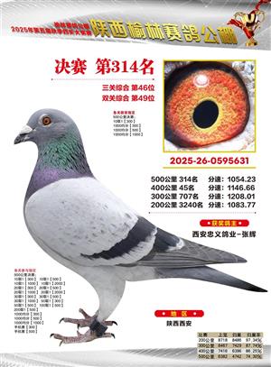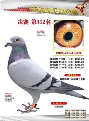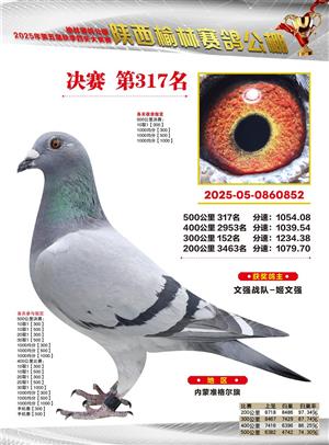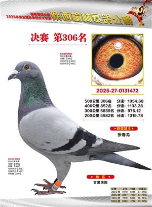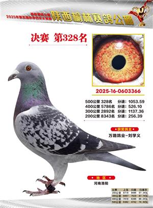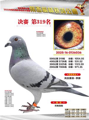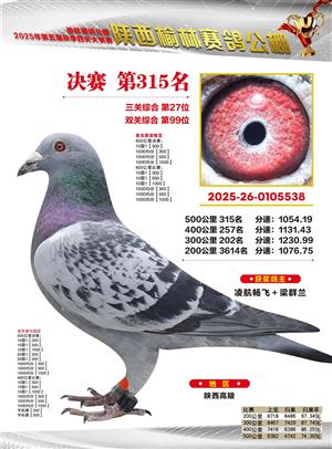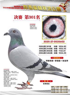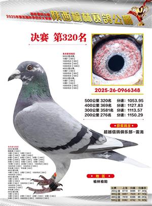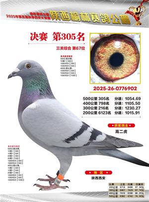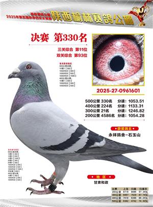陕西榆林赛鸽公棚2025年决赛获奖鸽欣赏(1-600名)