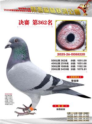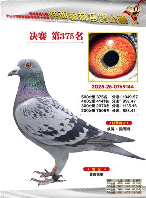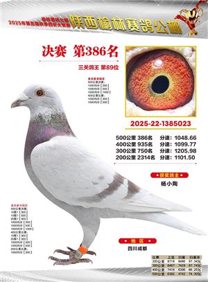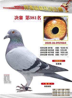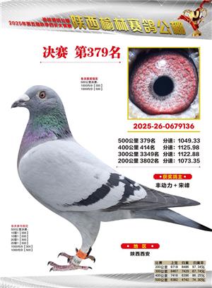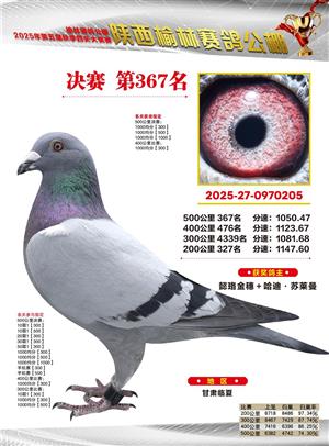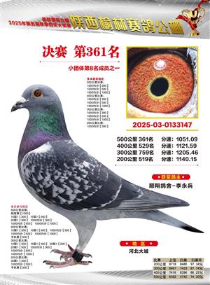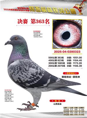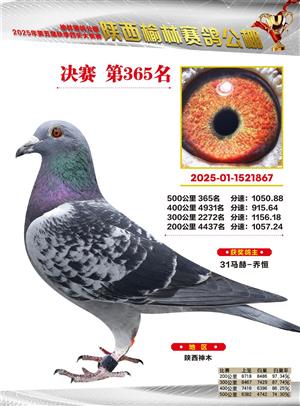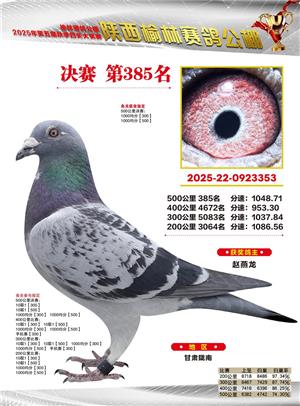 陕西榆林赛鸽公棚2025年决赛获奖鸽欣赏(1-600名)