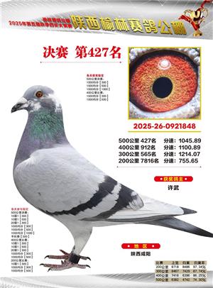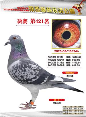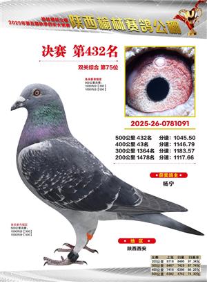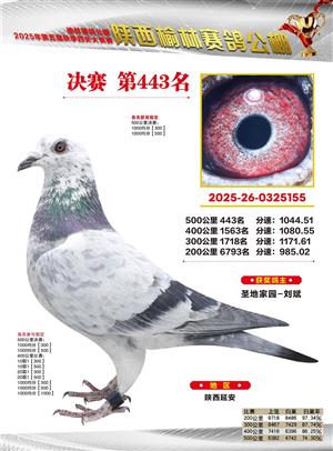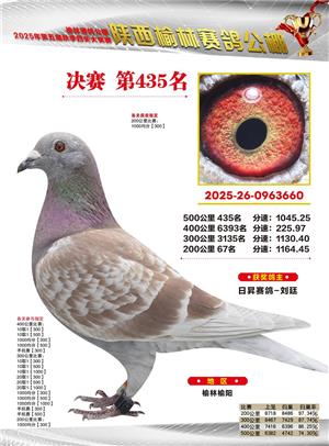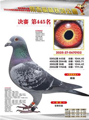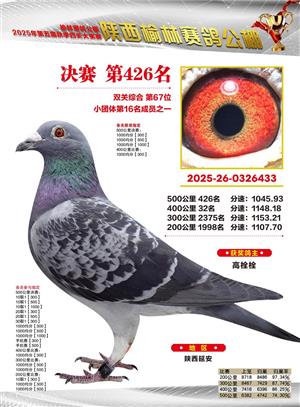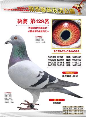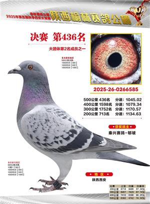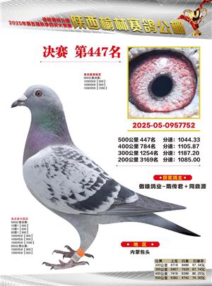陕西榆林赛鸽公棚2025年决赛获奖鸽欣赏(1-600名)