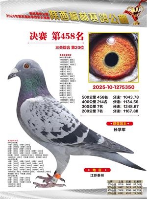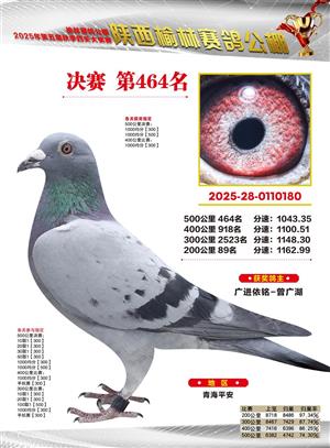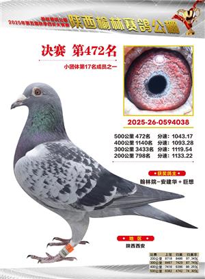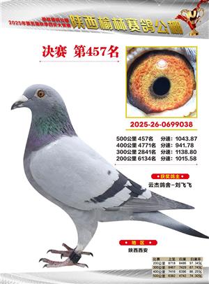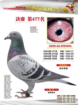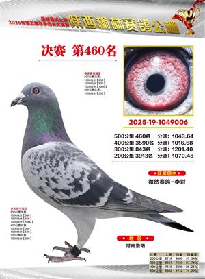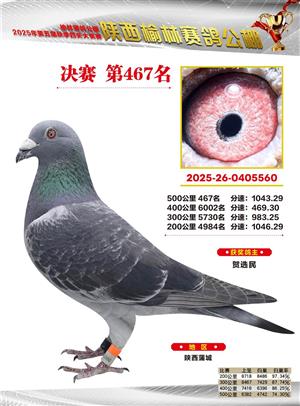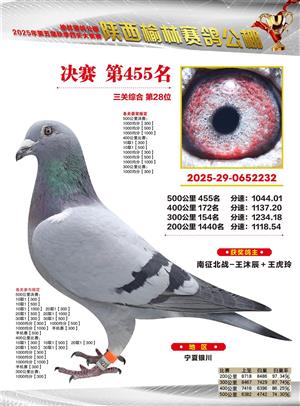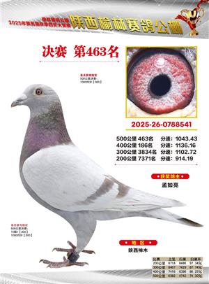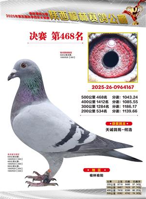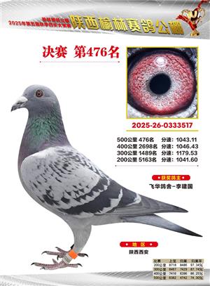 陕西榆林赛鸽公棚2025年决赛获奖鸽欣赏(1-600名)