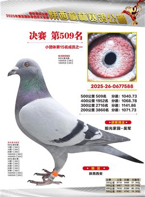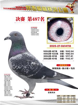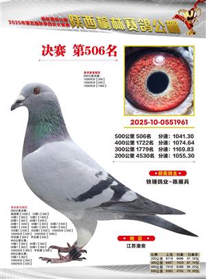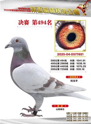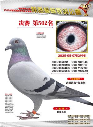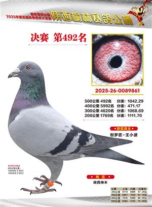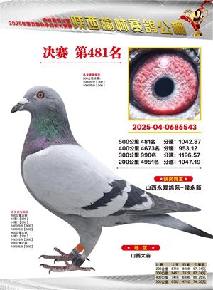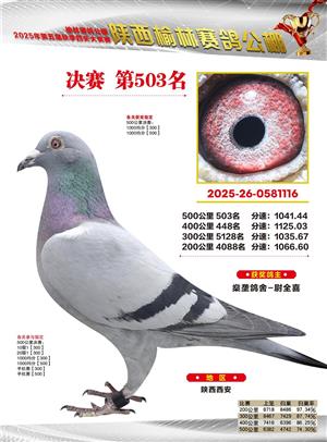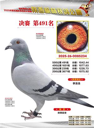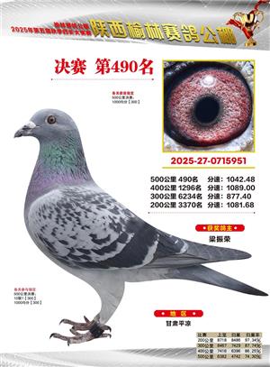 陕西榆林赛鸽公棚2025年决赛获奖鸽欣赏(1-600名)