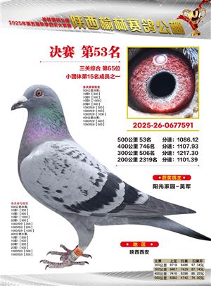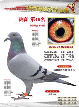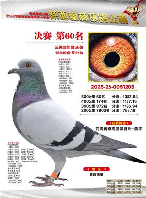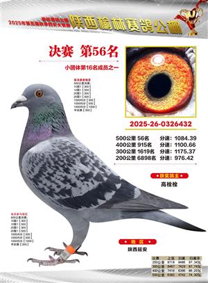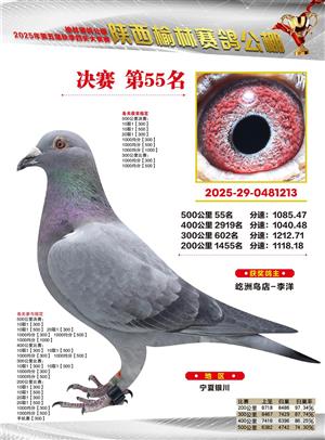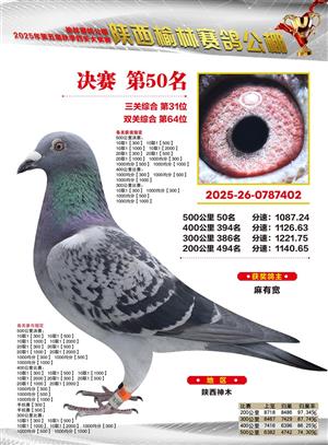 陕西榆林赛鸽公棚2025年决赛获奖鸽欣赏(1-600名)