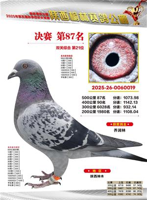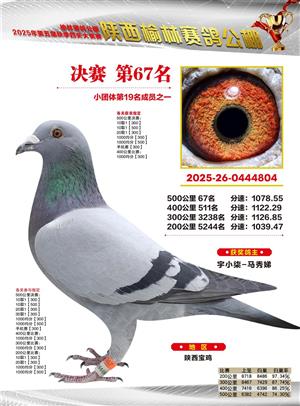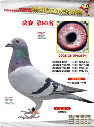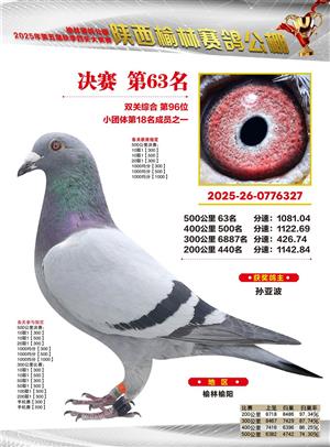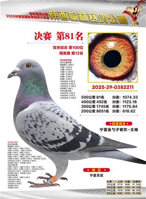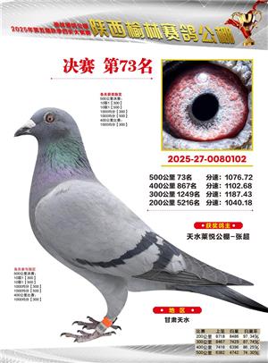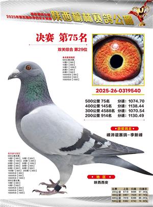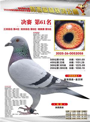 陕西榆林赛鸽公棚2025年决赛获奖鸽欣赏(1-600名)