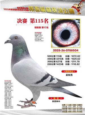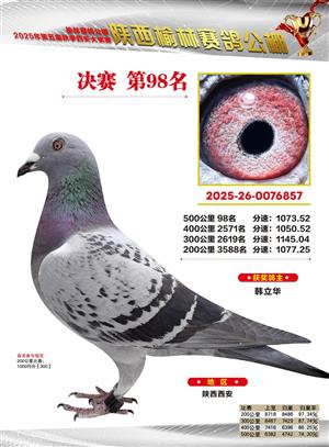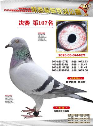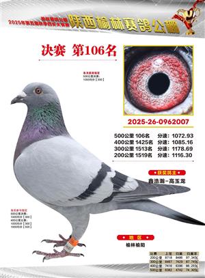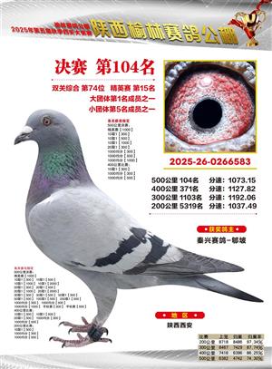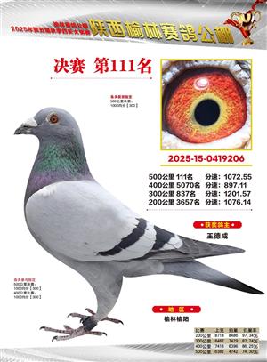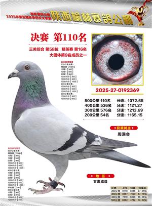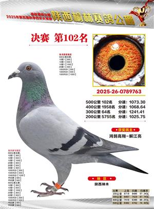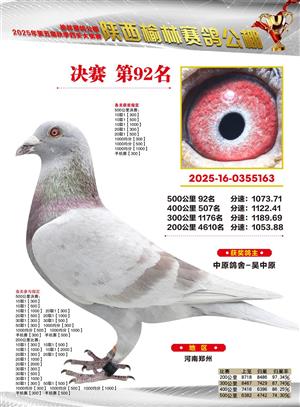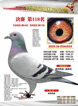 陕西榆林赛鸽公棚2025年决赛获奖鸽欣赏(1-600名)