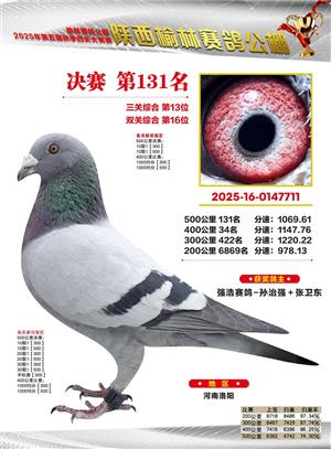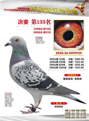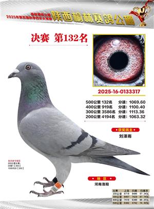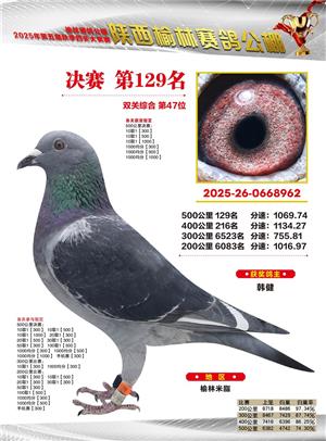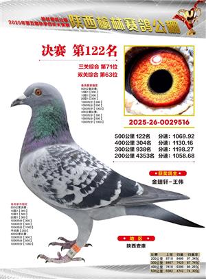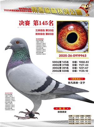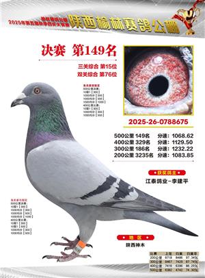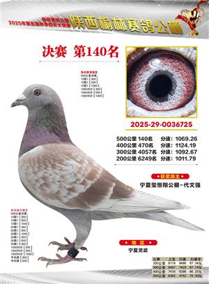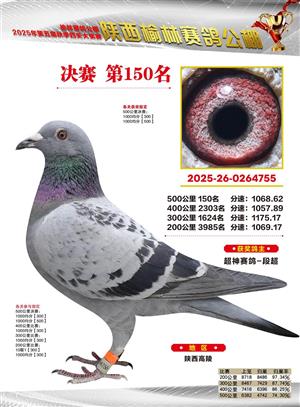 陕西榆林赛鸽公棚2025年决赛获奖鸽欣赏(1-600名)