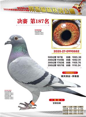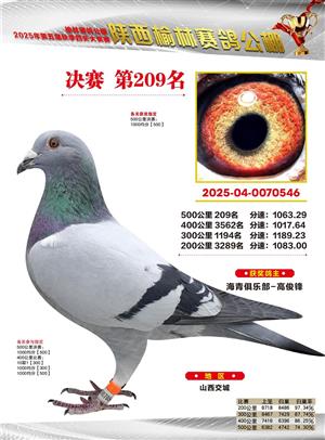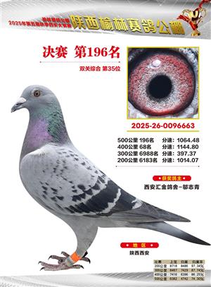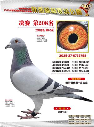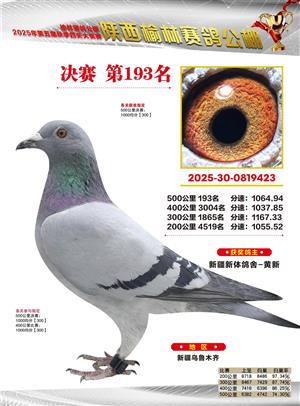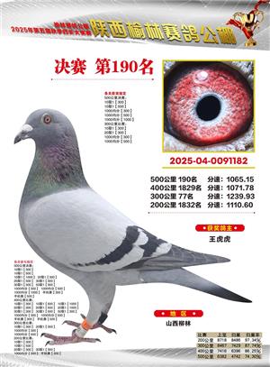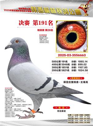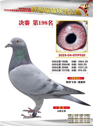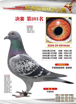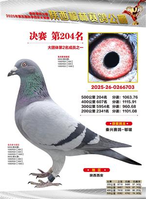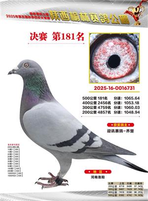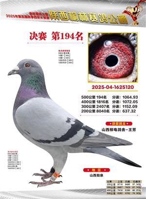 陕西榆林赛鸽公棚2025年决赛获奖鸽欣赏(1-600名)