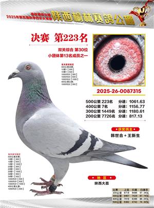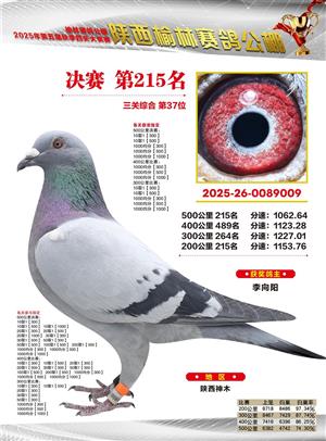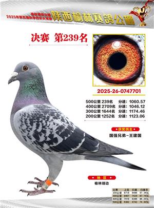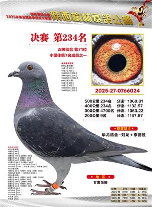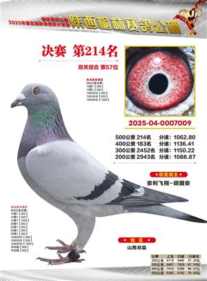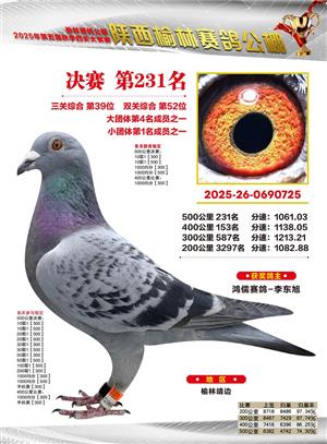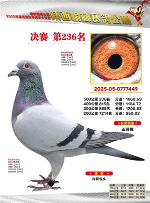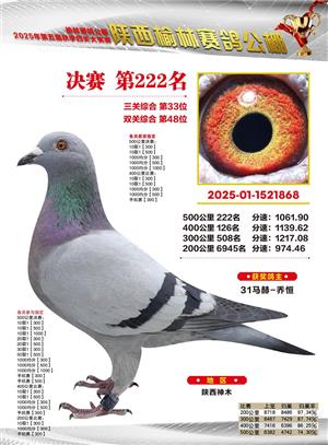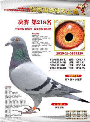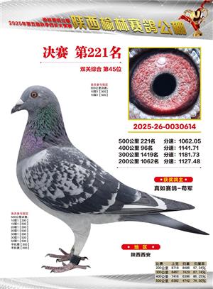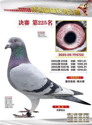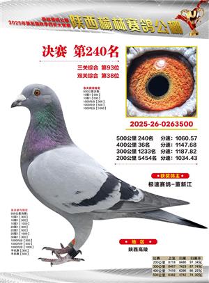 陕西榆林赛鸽公棚2025年决赛获奖鸽欣赏(1-600名)