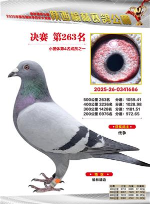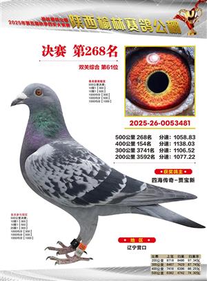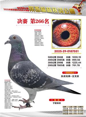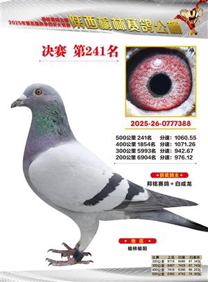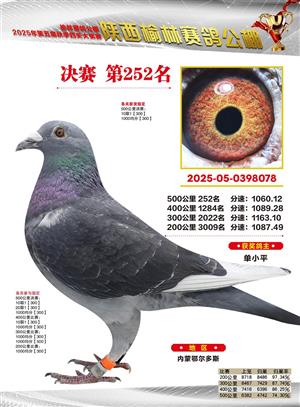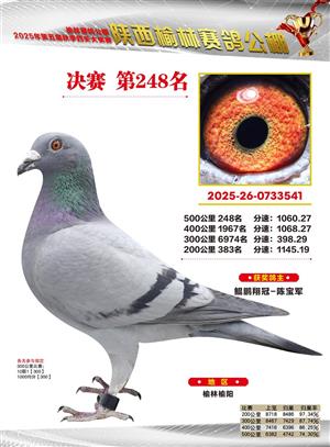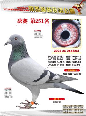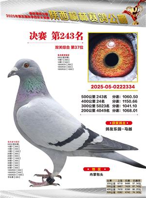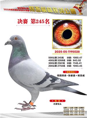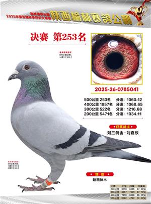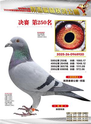 陕西榆林赛鸽公棚2025年决赛获奖鸽欣赏(1-600名)
