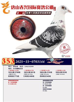春兴国际(小棚)2025年决赛获奖鸽照片