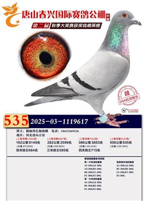 春兴国际(小棚)2025年决赛获奖鸽照片