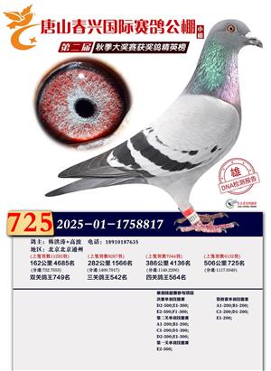 春兴国际(小棚)2025年决赛获奖鸽照片