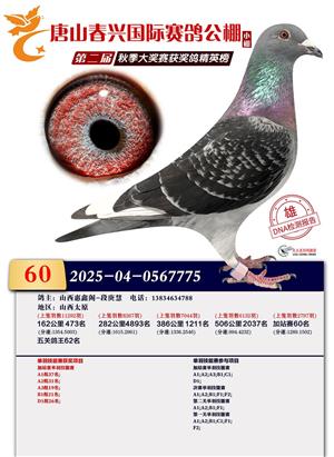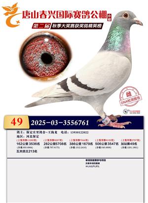 春兴国际(小棚)2025年加站赛获奖鸽照片