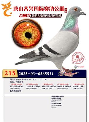 春兴国际(小棚)2025年加站赛获奖鸽照片
