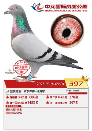 中宠国际(天津)赛鸽公棚2025年秋赛获奖鸽照片
