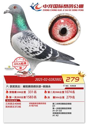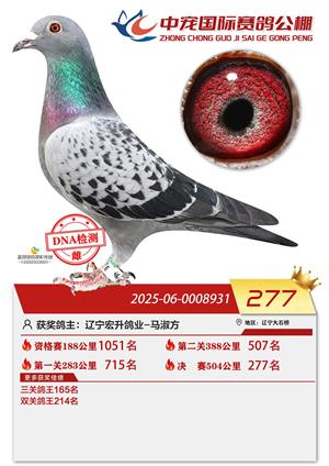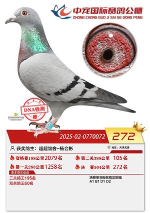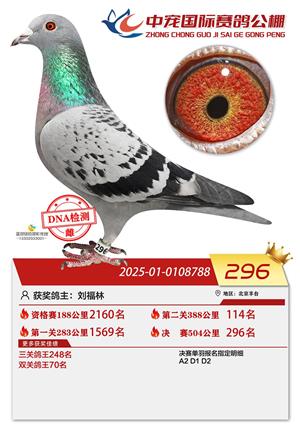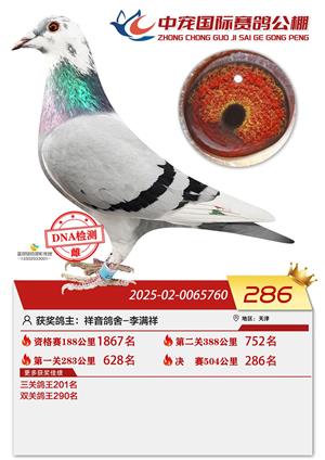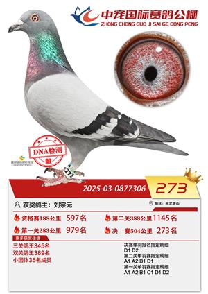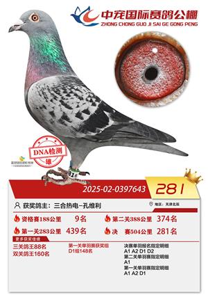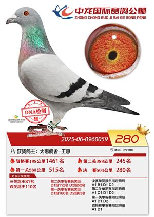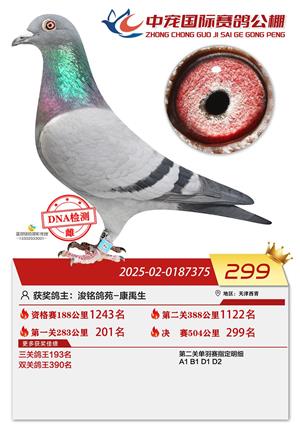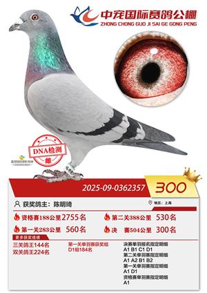 中宠国际(天津)赛鸽公棚2025年秋赛获奖鸽照片