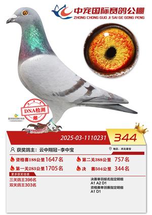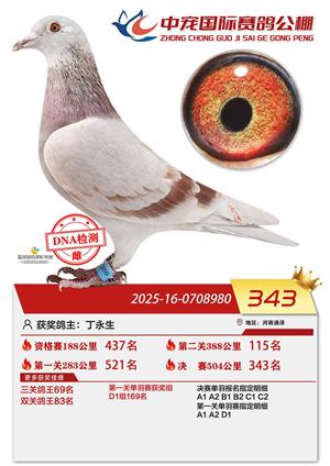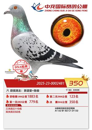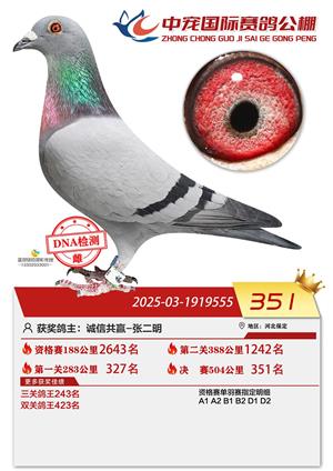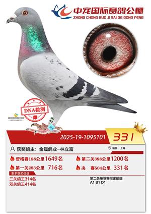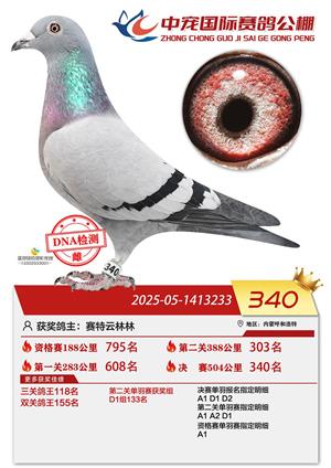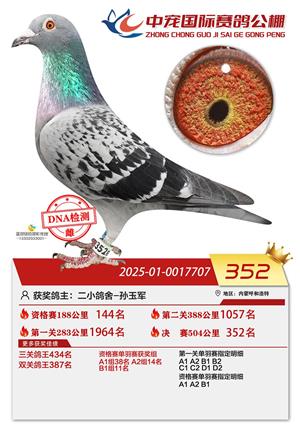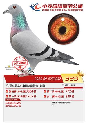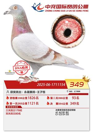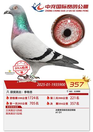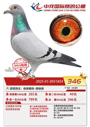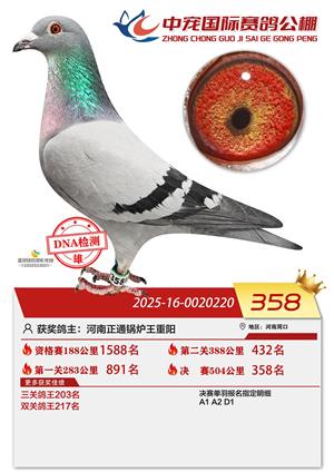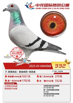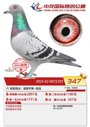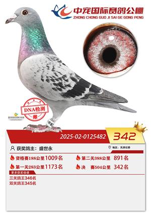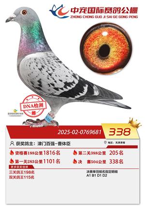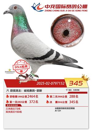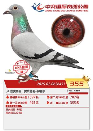 中宠国际(天津)赛鸽公棚2025年秋赛获奖鸽照片