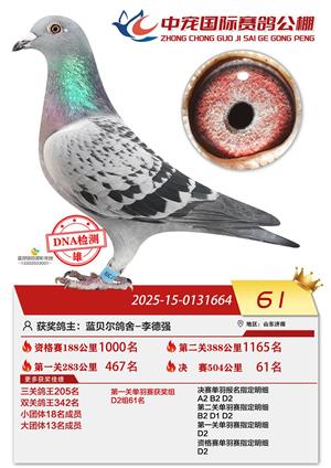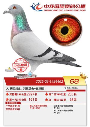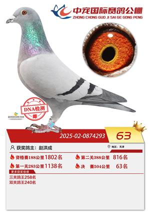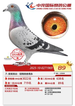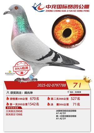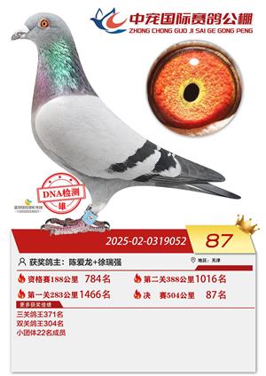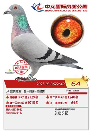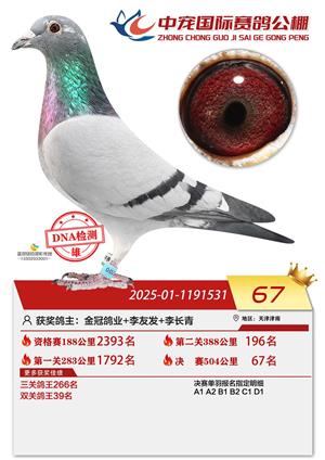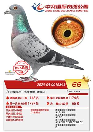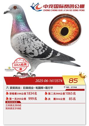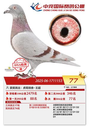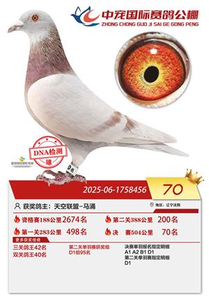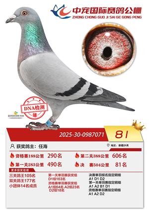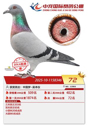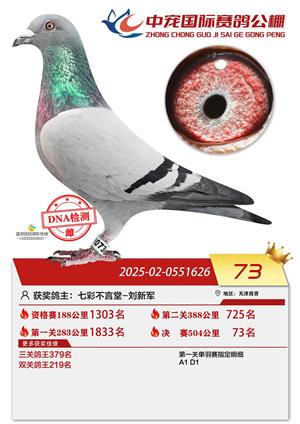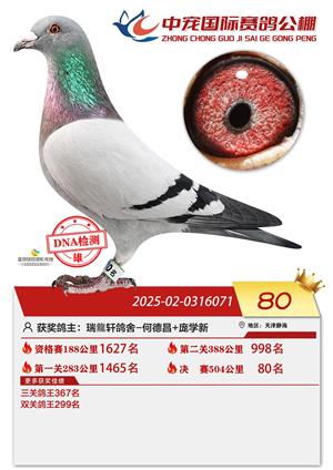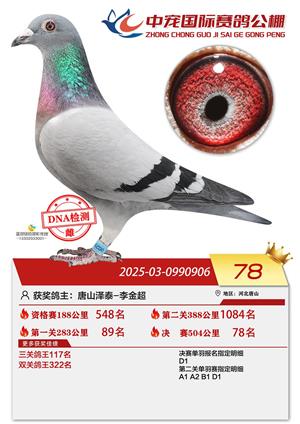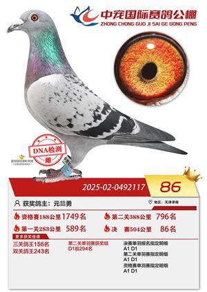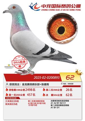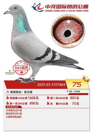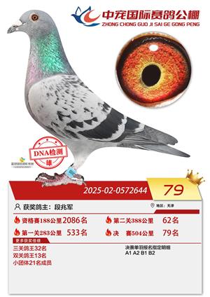 中宠国际(天津)赛鸽公棚2025年秋赛获奖鸽照片