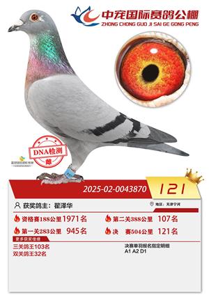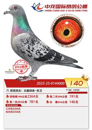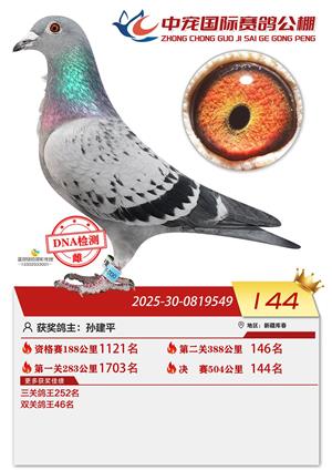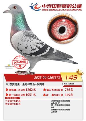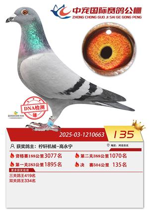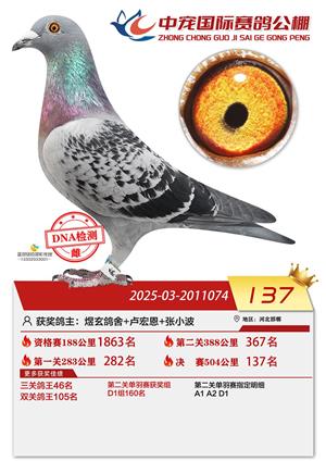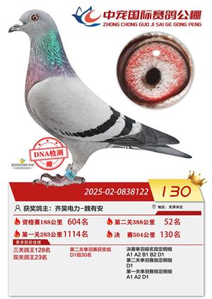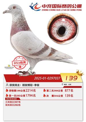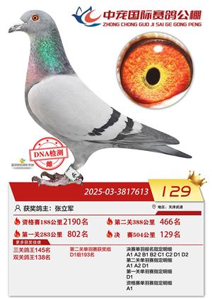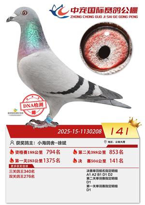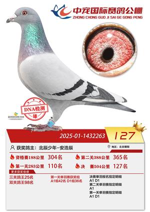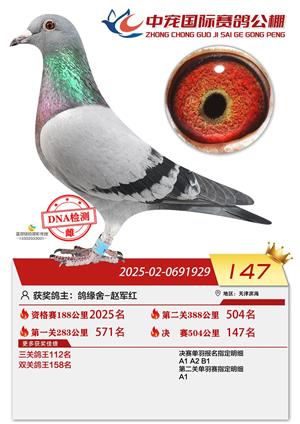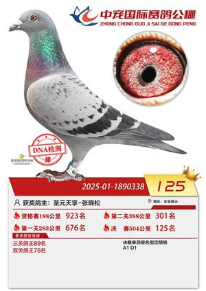 中宠国际(天津)赛鸽公棚2025年秋赛获奖鸽照片