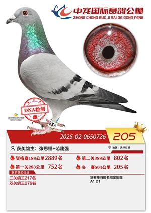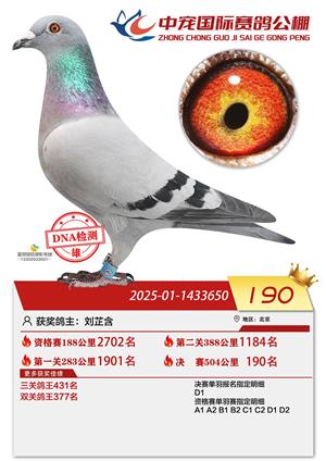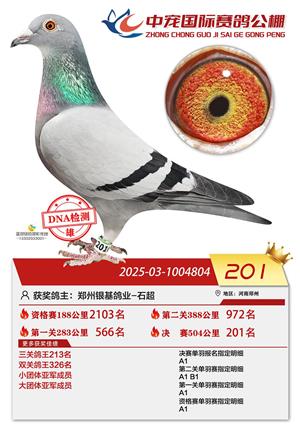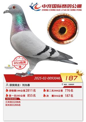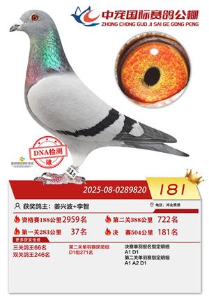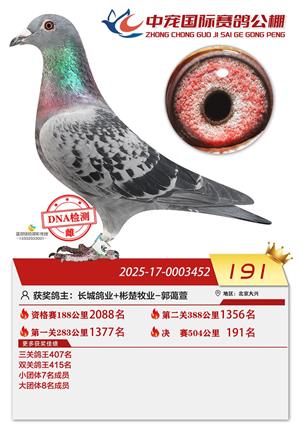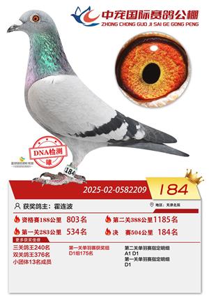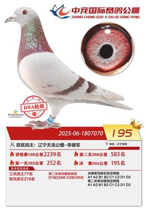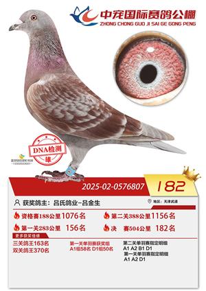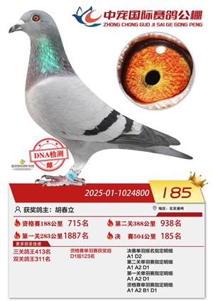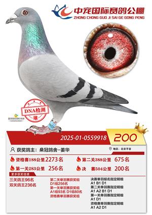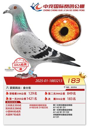 中宠国际(天津)赛鸽公棚2025年秋赛获奖鸽照片
